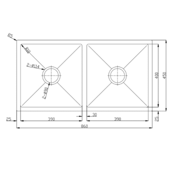 860 X 450cm 1-1/2 Bowls Kitchen/Laundry Sink