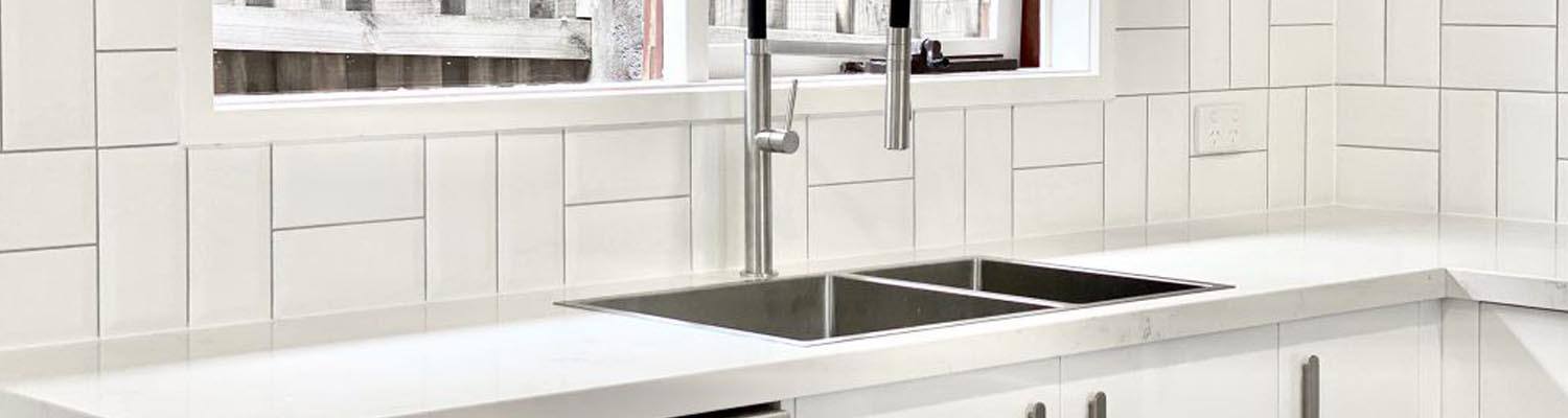 Our range includes small, single bowl kitchen sinks with drainboards which are designed for narrow benchtops and small spaces. These are perfect for sculleries, island benchtops, laundries, and as a space saver. They can also be top or under-mounted to suit either preference. Double drainer kitchen sinks are also available in various styles, varying from under-mounted double bowls, to one full bowl and a half bowl sinks with a drainer.