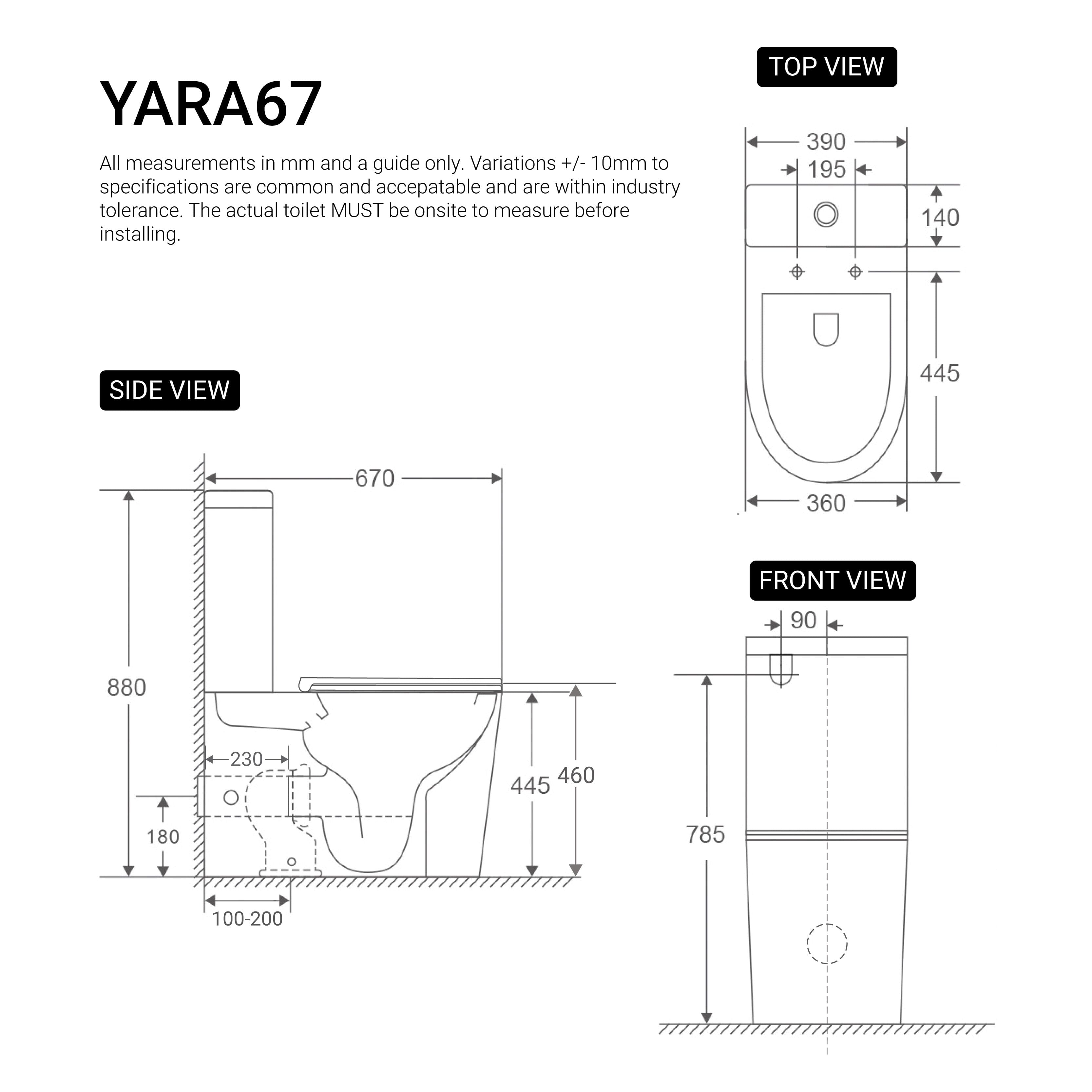 *Ceramic is a natural product and therefore subject to variations. This should be seen as a quality that adds to its unique natural beauty. Variations +/- 2% to the specifications are common and acceptable and are within industry tolerance. We highly recommend having the toilet suite before commencing rough in.