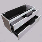 The Bronte collection of vanities and bathroom storage cabinets features a simple and clean design with large overlay drawers and matte white 2 pack finish, ideal for those who want to keep their bathroom spotless. The 900mm wall-hung bathroom vanity is the most popular size for average-sized bathroom space with easy storage and access. As the cabinets are suspended from the floor, this creates an illusion of a bigger space. The matte white fluted vertical grain design of the Bronte allows for creativity in how it's employed in your bathroom which gives an elegant and luxurious feel. The soft-close drawer also comes with a U-shaped cut-out for easy plumbing. Arova has a range of products that bring life, aesthetics, practicality, and technology into your bathroom. The unique cabinet is available in 750mm, 900mm, and 1200mm, resulting in a personal statement for your home.