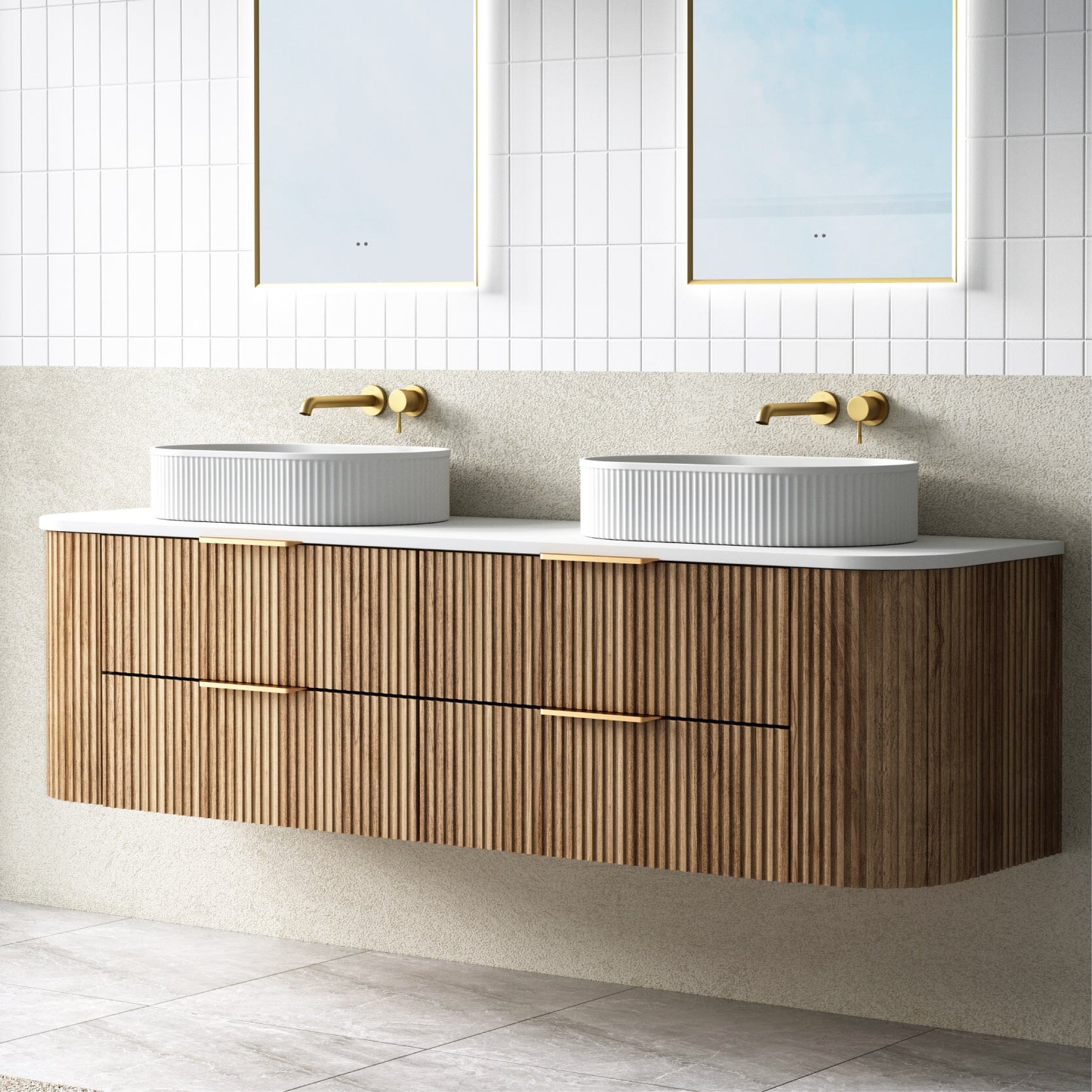 1800mm Curved Fluted Wall Hung Vanity Timber Veneer Hadley