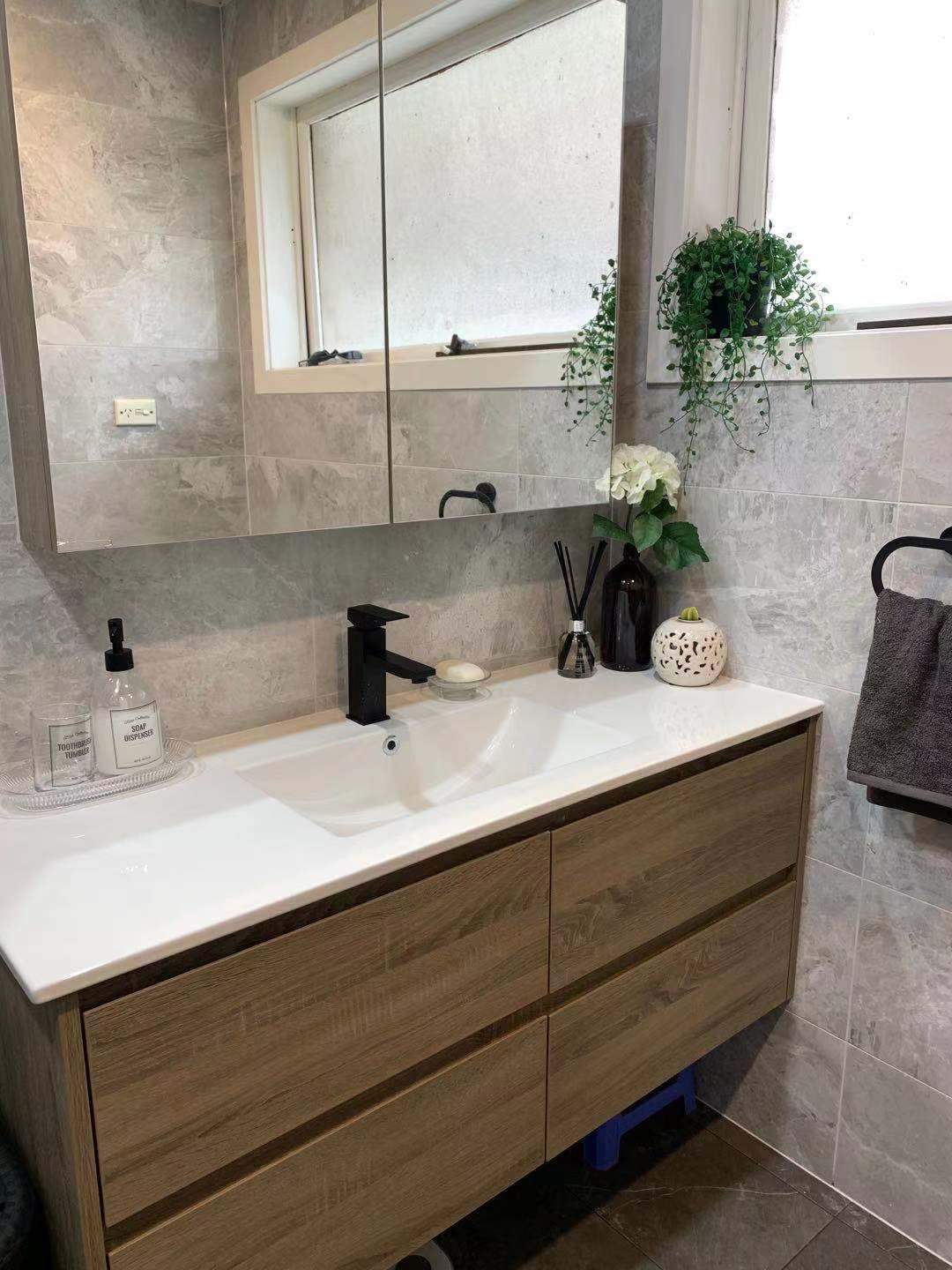 The KRIS 1200mm bathroom vanity in Caribbean Oak Grey by Arova is seriously beautiful and practical. This high quality vanity unit instantly uplifts the bathroom look by adding a sense of warmth and luxury. Kris wall mounted vanities comes with ultra wear textured surface in grey oak. Kris 1200mm timber vanity comes with a single centre basin configuration. You also have the option of an offset single basin mounted on the left or right hand side on our engineered stone top. Kris bathroom cabinets are designed with full extension drawers to ensure easy access. The top drawers are fitted with dividers for organising cosmetics and every day consumables. The bottom drawers allow large items that may not be required day to day.