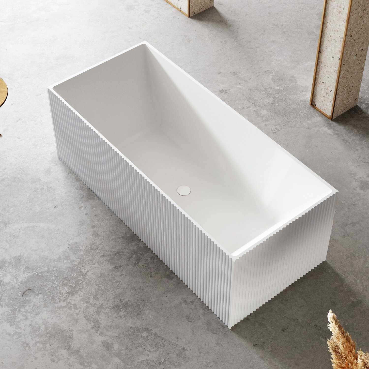 KYLA 1500mm V-Groove Fluted Square/Rectangular Back to Wall Free Standing Bathtub Gloss White