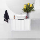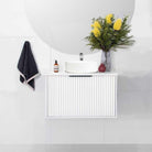 600mm Fluted Wall Hung Bathroom Vanity White Slim Design Avery + Bliss Silica Free Stone Vanity Top
