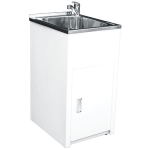 The Lavassa Laundry Cabinet is flush fitting and has a low profile. Classic and simple in design, this Laundry Cabinet comes with a stainless steel laundry tub and a Moisture Resistant 1 Pac Gloss White Laundry Cabinet featuring modern pull door handles. The Lavassa Laundry Cabinet features an under-sink storage compartment that allows you to keep all your laundry products neat, along with its spacious 35-liter polished bowl - ideal for all your everyday laundry.