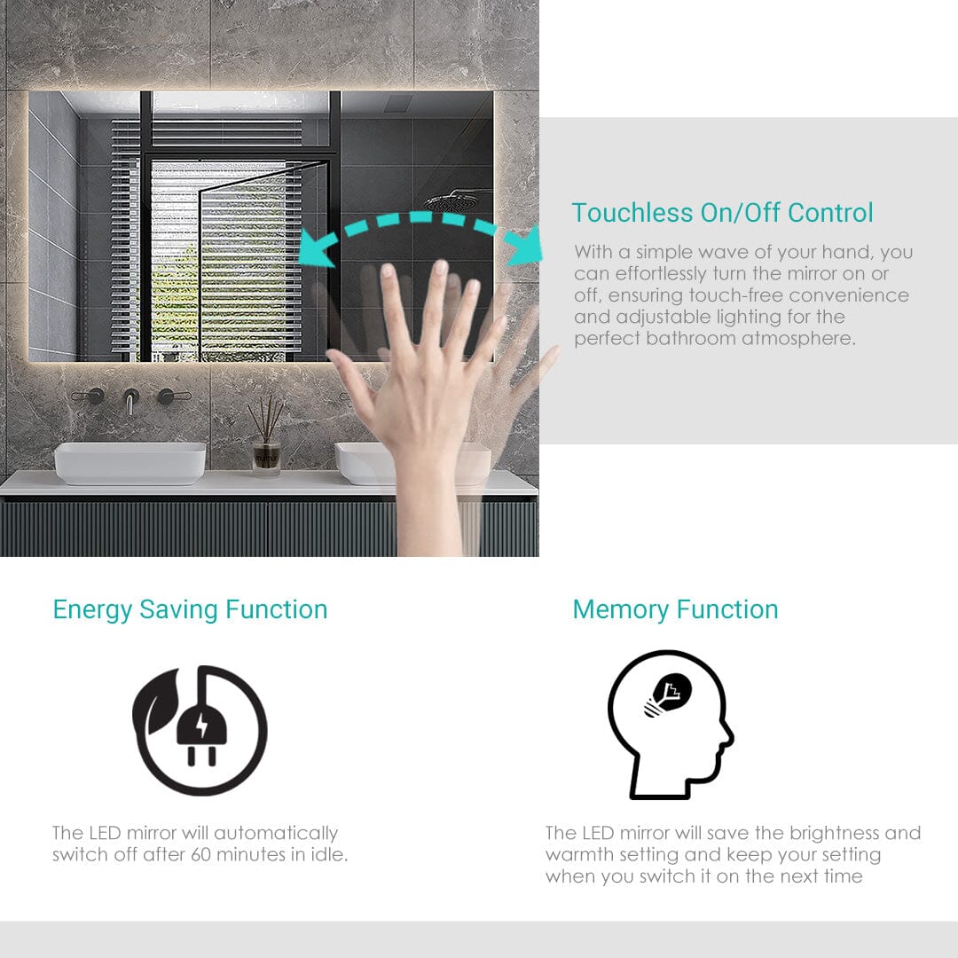 Frameless 1200x700mm Dimmable LED Anti-Fog Bathroom Mirror Sol