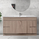 Logan 1500mm bathroom vanity by Arova is a statement modern free standing bathroom piece that suits most large modern bathrooms. Beautifully finished in textured Caribbean grey oak, Logan 1500mm vanity will surely compliment any bathroom space. Designed with 4 soft close drawers and 3 doors, Logan 1500mm bathroom cabinet offers easy plumbing and generous storage for your day to day consumables.