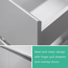 Have you ever wanted a simple and modern bathroom without compromising quality or storage space? If so, the LUCA collection of vanities by Arova are the ones to go for. Luca 1800mm freestanding bathroom vanity is a fantastic item that offers a hassle-free installation, perfect for those looking for a large, stylish bathroom centerpiece. Its sleek design features finger pull drawers and overlay doors, giving it a clean, contemporary look. Built from 16mm moisture-resistant melamine and 18mm MDF, it ensures durability in humid bathroom conditions. The high-quality soft-close hinges and drawer slides provide a smooth and quiet experience.