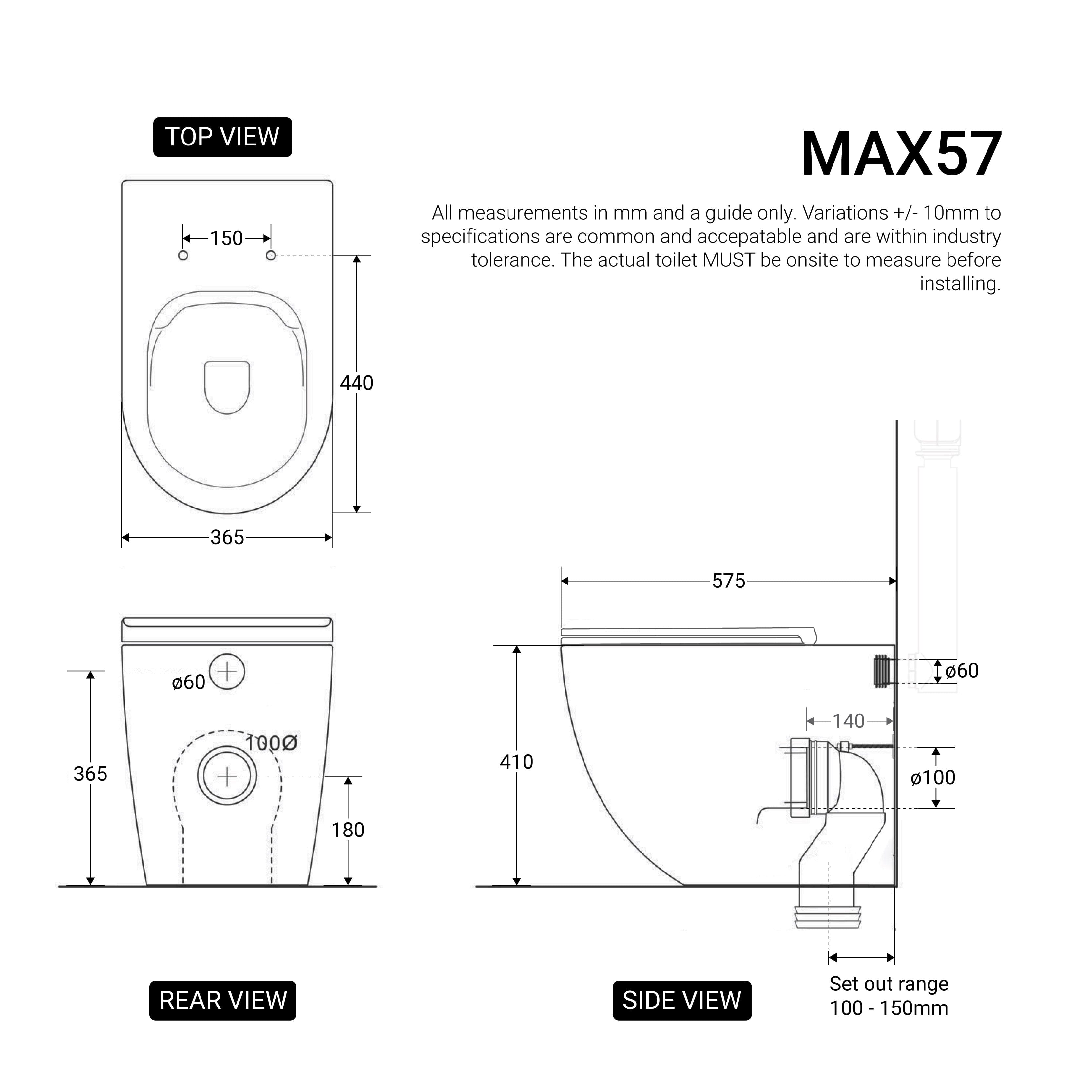 *Ceramic is a natural product and therefore subject to variations. This should be seen as a quality that adds to its unique natural beauty. Variations +/- 2% to the specifications are common and acceptable and are within industry tolerance. We highly recommend having the toilet suite before commencing rough in.