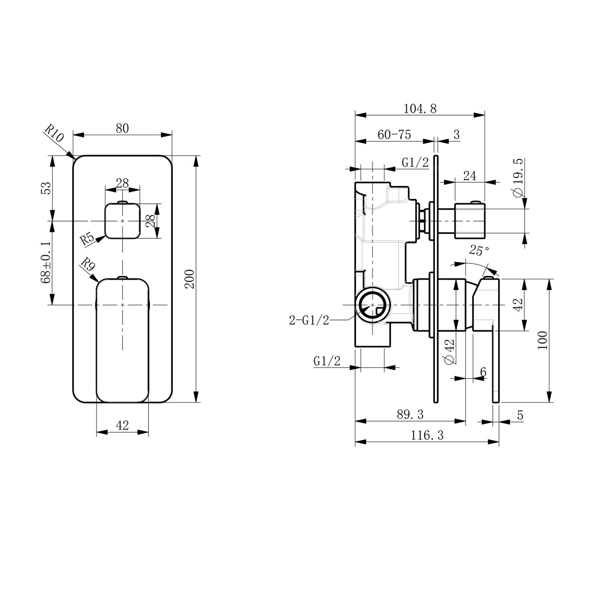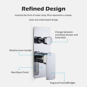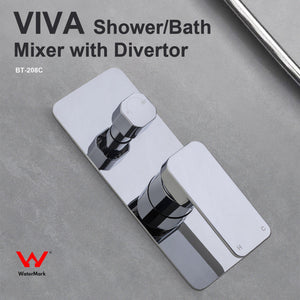 The VIVA shower/Bath Mixer with divertor is a staple product for duel shower functions. The divertor gives you the ability to switch between your overhead shower and your hand held shower, and is used as a divertor for bath functions when your shower is over the bath.