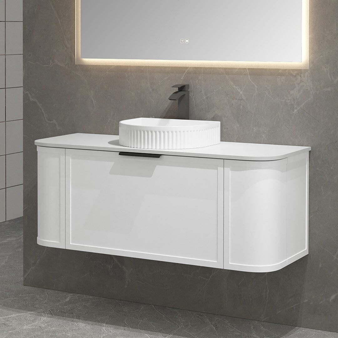1200mm Curved Wall Hung Vanity Matte White York + Eira Stone Top